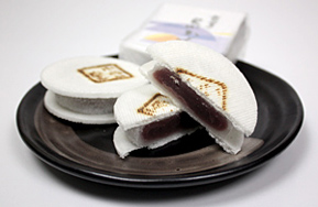 上等のこし餡を求肥で包み、やわらか最中でサンド。